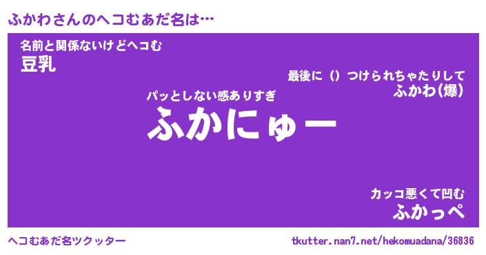 | ポケモン風あだ名 | 『フカチュウ』『フカワダネ』 |