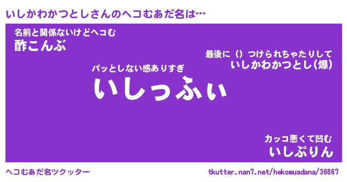 | 男性向けラノベタイトル風あだ名 | 『いしかわかつとしの憂鬱』 |