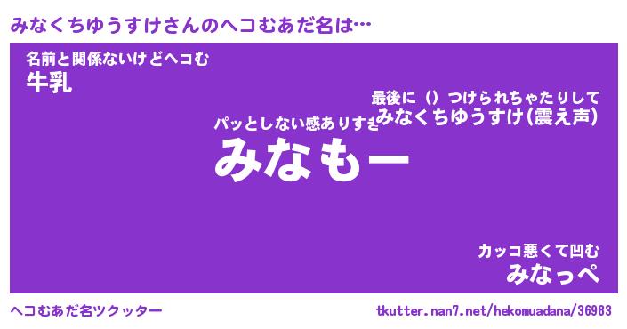 | 男性向けラノベタイトル風あだ名 | 『みなくちゆうすけの憂鬱』 |