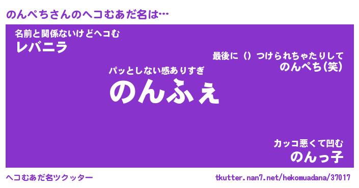 | ファンタジー風あだ名 | 『ノンフェル』『エターナルノンペチー』 |