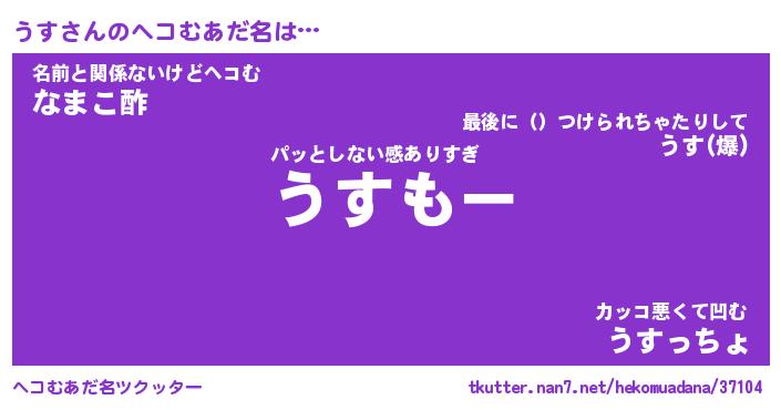 | ポケモン風あだ名 | 『ウスチュウ』『ウスダネ』『ヒウス』 |