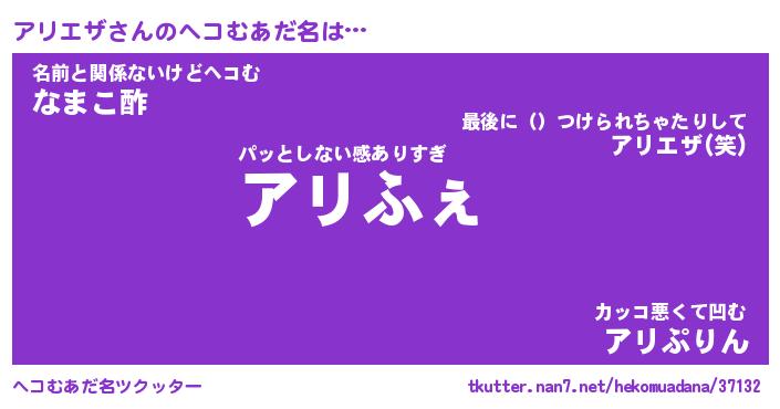| 意味不明あだ名 | 『ペロリンアリエザ』『永久保存アリエザ』 |