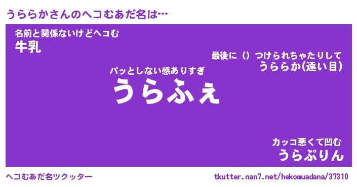 | ヒーロー風カッコイイあだ名 | 『スーパーウララカ』『魔戒騎士ウラ』 |