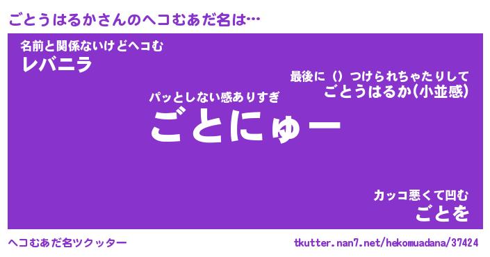 | 恥ずかしいあだ名 | 『プリティーごとうはるか』『ごとっちょ』 |