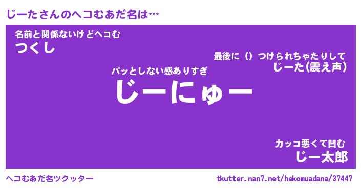 | 意味不明あだ名 | 『ペロリンじーた』『じーたフォーエバー』 |