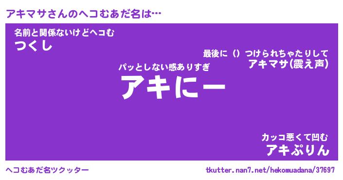 | 意味不明あだ名 | 『ペロリンアキマサ』『永久保存アキマサ』 |