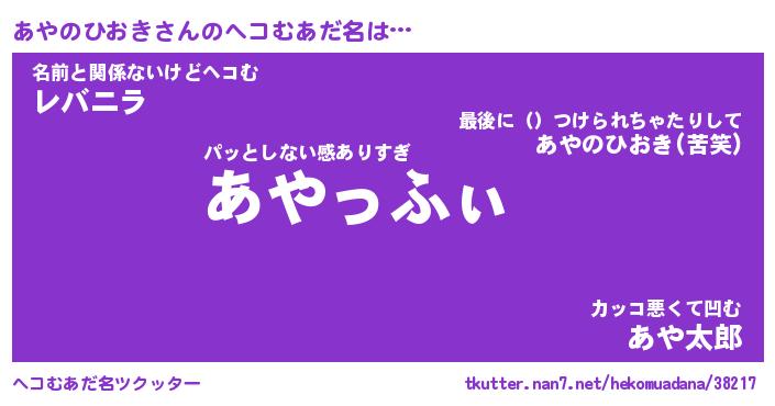 | 男性向けラノベタイトル風あだ名 | 『あやのひおきの憂鬱』 |