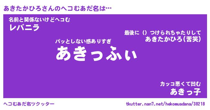 | ヒーロー風カッコイイあだ名 | 『スーパーアキタカヒロ』『銀牙騎士アキ』 |