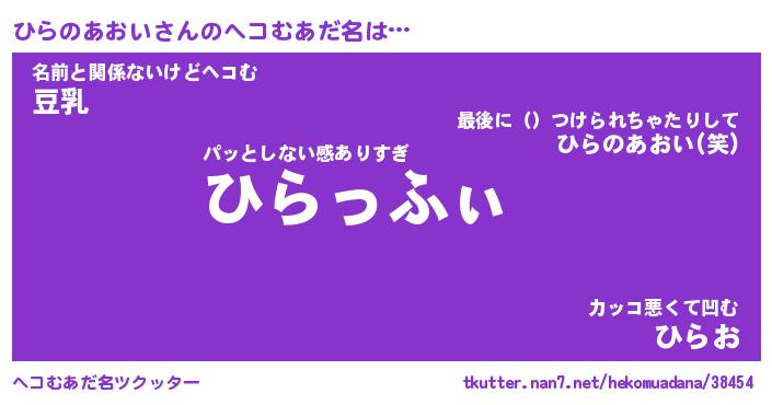 | ヒーロー風カッコイイあだ名 | 『スーパーヒラノアオイ』『銀牙騎士ヒラ』 |