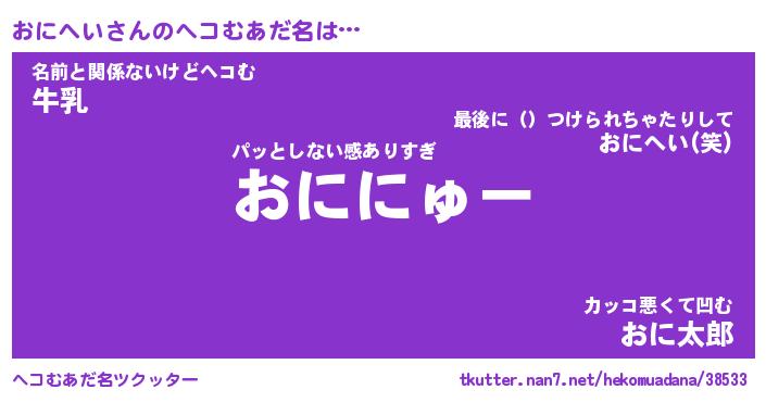 | 意味不明あだ名 | 『ペロリンおにへい』『永久保存おにへい』 |