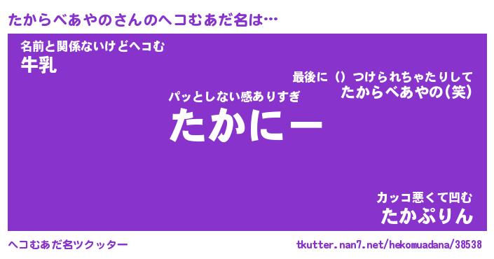 | 恥ずかしいあだ名 | 『プリティーたからべあやの』『たかちん』 |