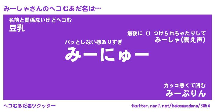 | 意味不明あだ名 | 『ペロリンみーしゃ』『永久保存みーしゃ』 |