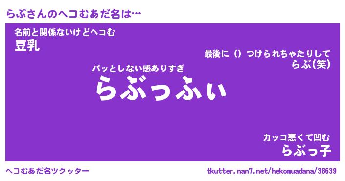 | ポケモン風あだ名 | 『ラブチュウ』『ラブダネ』『ヒラブ』 |