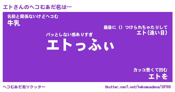 | ポケモン風あだ名 | 『エトチュウ』『エトダネ』『ヒエト』 |
