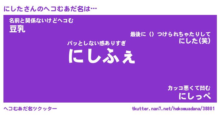 | ピコ太郎風あだ名 | 『ニコ三郎』『ピニ三郎』『ニシ四郎』 |
