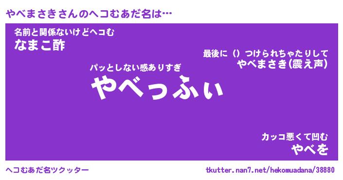 | ファンタジー風あだ名 | 『ヤベフェル』『エターナルヤベマサキー』 |