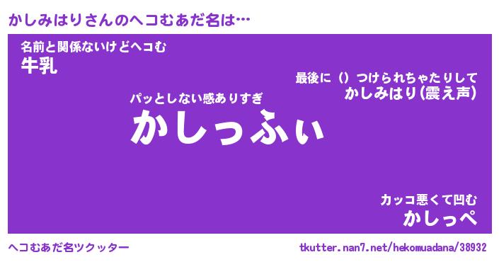 | 男性向けラノベタイトル風あだ名 | 『かしみはりの憂鬱』 |