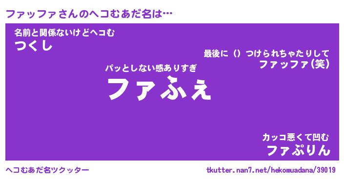 | 男性向けラノベタイトル風あだ名 | 『ファッファの憂鬱』 |
