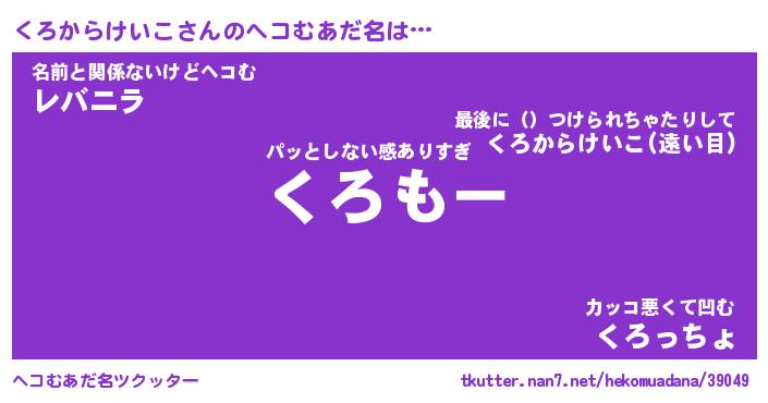 | 意味不明あだ名 | 『ペロリンくろからけいこ』 |