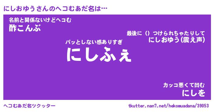 | ファンタジー風あだ名 | 『ニシフェル』『エターナルニシオユウー』 |