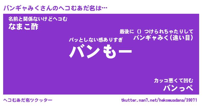 | 伝説のあだ名 | 『伝説のスナイパーバンギャみく』 |