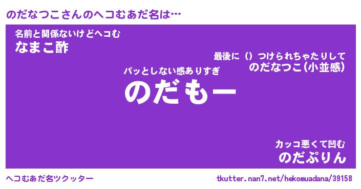 | 2回繰り返すあだ名 | 『のだのだ』『ののだだ』『なあなあ』 |