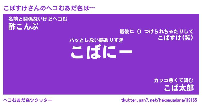 | 男性向けラノベタイトル風あだ名 | 『こばすけの憂鬱』 |