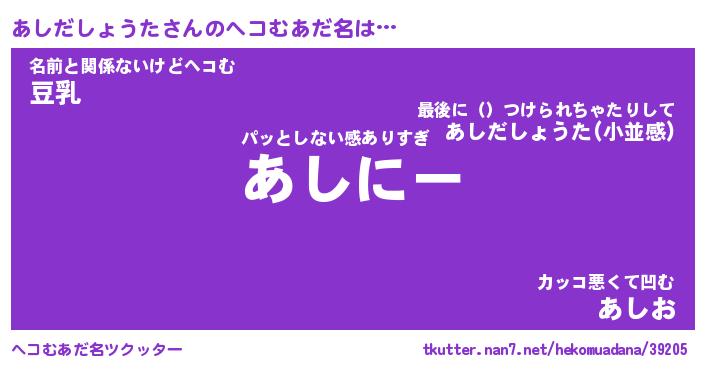 | ヒーロー風カッコイイあだ名 | 『スーパーアシダショウタ』 |