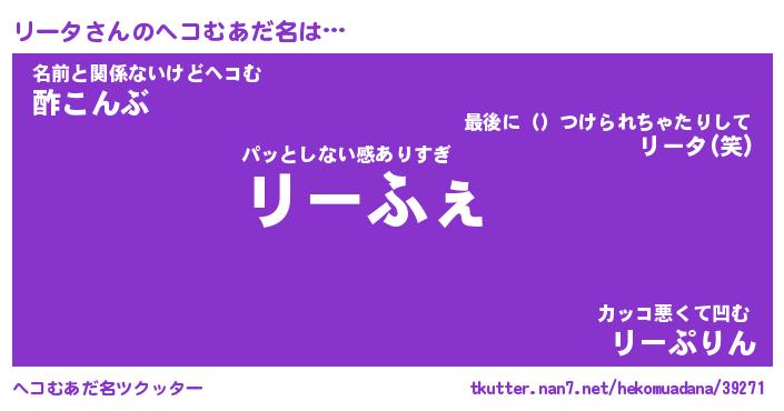 | 意味不明あだ名 | 『ペロリンリータ』『リータフォーエバー』 |