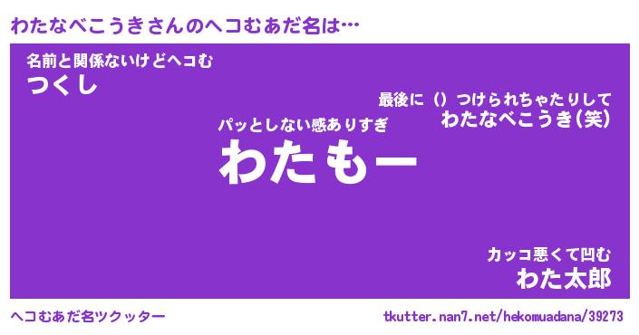 | ヒーロー風カッコイイあだ名 | 『スーパーワタナベコウキ』 |