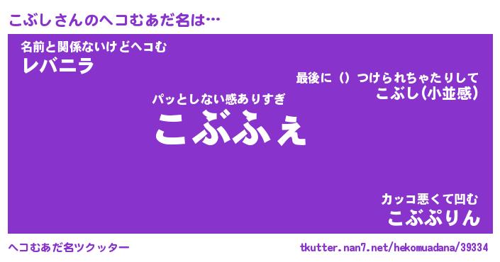 | 2回繰り返すあだ名 | 『こぶこぶ』『ここぶぶ』『なあなあ』 |