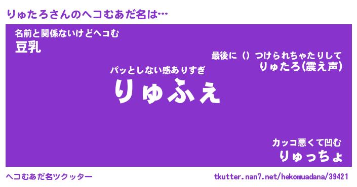 | 意味不明あだ名 | 『ペロリンりゅたろ』『永久保存りゅたろ』 |