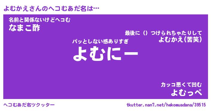 | ポケモン風あだ名 | 『ヨムチュウ』『ヨムカダネ』 |