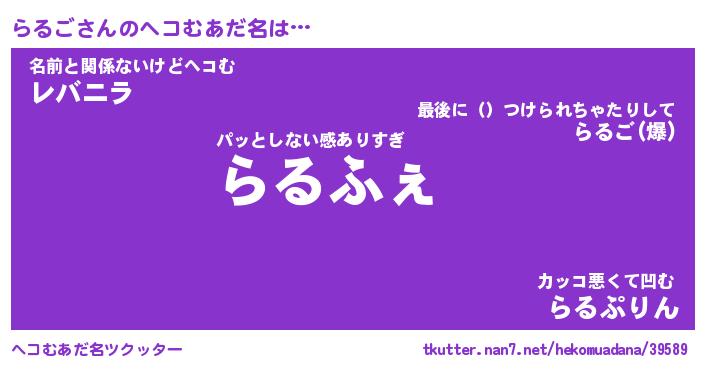 | 意味不明あだ名 | 『ペロリンらるご』『らるごフォーエバー』 |