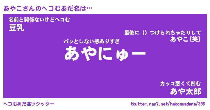 | 2回繰り返すあだ名 | 『あやあや』『ああやや』『にたにた』 |