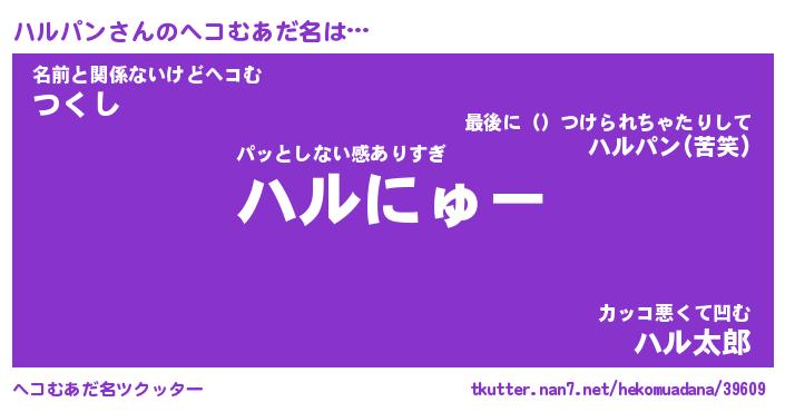 | ヒーロー風カッコイイあだ名 | 『スーパーハルパン』『幻影騎士ハル』 |