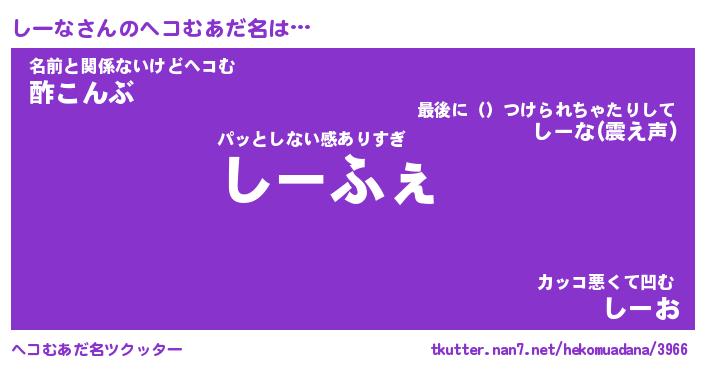 | 意味不明あだ名 | 『ペロリンしーな』『しーなフォーエバー』 |