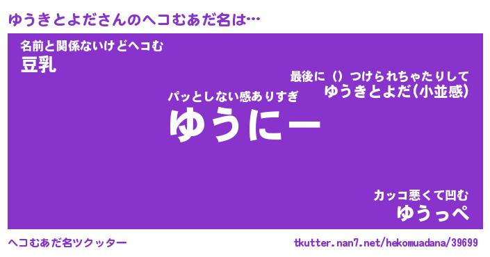 | ポケモン風あだ名 | 『ユウチュウ』『ユウキダネ』 |