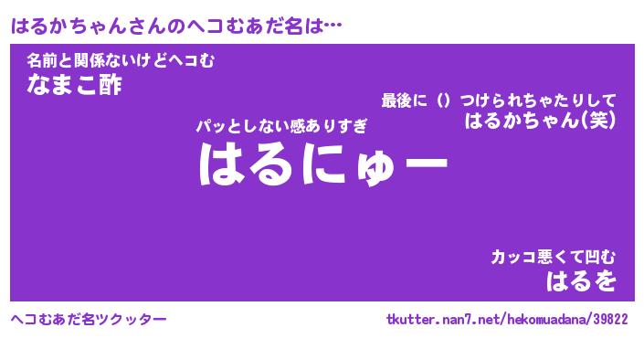 | 2回繰り返すあだ名 | 『はるはる』『ははるる』『おらおら』 |