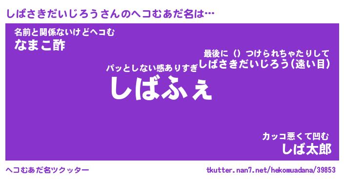 | ヒーロー風カッコイイあだ名 | 『スーパーシバサキダイジロウ』 |