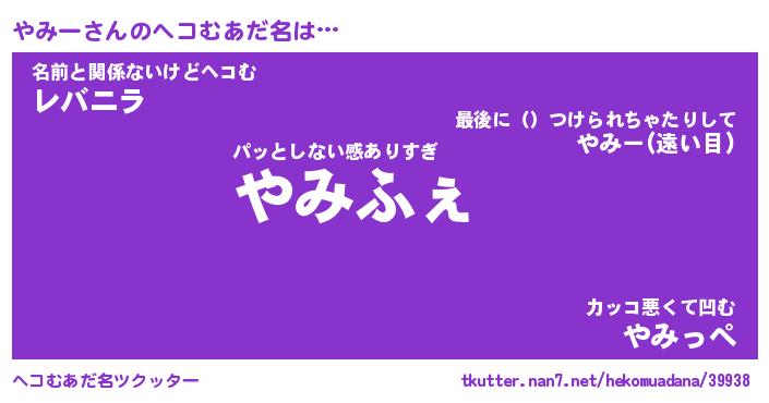 | ヒーロー風カッコイイあだ名 | 『スーパーヤミー』『ウルトラやみーマン』 |