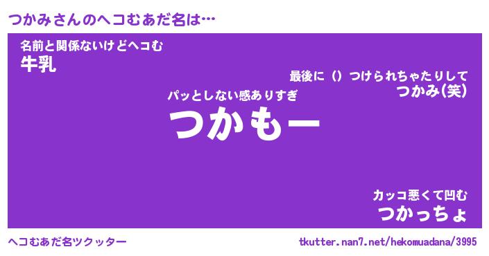 | ファンタジー風あだ名 | 『ツカフェル』『エターナルツカミー』 |