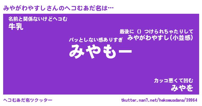 | ファンタジー風あだ名 | 『ミヤフェル』『ファントムミヤス』 |