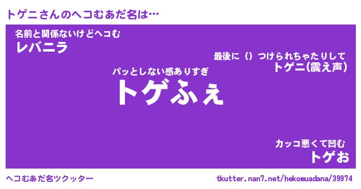 | ファンタジー風あだ名 | 『トゲフェル』『エターナルトゲニー』 |