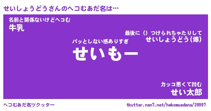 | 男性向けラノベタイトル風あだ名 | 『せいしょうどうの憂鬱』 |