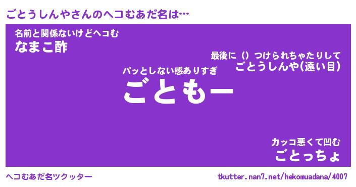 | 男性向けラノベタイトル風あだ名 | 『ごとうしんやの憂鬱』 |