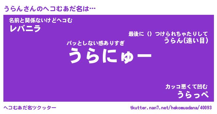 | ヒーロー風カッコイイあだ名 | 『スーパーウラン』『ウルトラうらんマン』 |