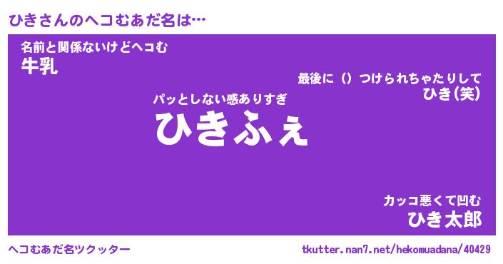 | ポケモン風あだ名 | 『ヒキチュウ』『ヒキダネ』『ヒヒキ』 |