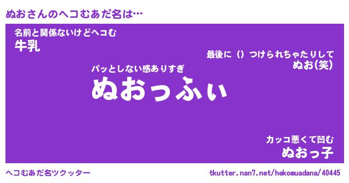 | ポケモン風あだ名 | 『ヌオチュウ』『ヌオダネ』『ヒヌオ』 |