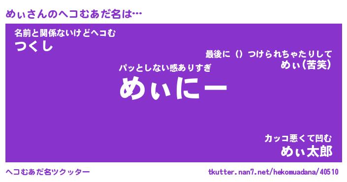 | ヒーロー風カッコイイあだ名 | 『スーパーメィ』『ウルトラめぃマン』 |